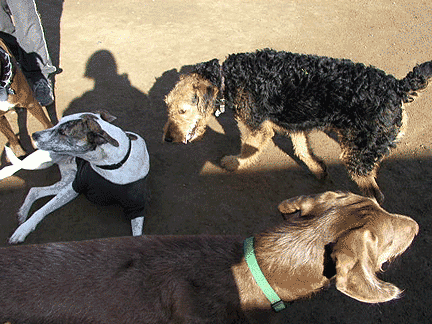 We started out at the dog park, slightly later than usual (which irked me to no end) because they’ve got a new maintenance person who will actually be doing the weekly dogpark maintenance! Lots of fun with other doggies today: