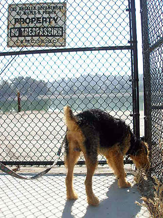 Lots of walking for me today… first mom and I did a tour around the Silver Lake Reservoir (notice me ignoring the No Tresspassing signs), then a quick trip to the dog park (where we didn’t know anyone – how weird is that?) where I had a quick drink and then it was back into…