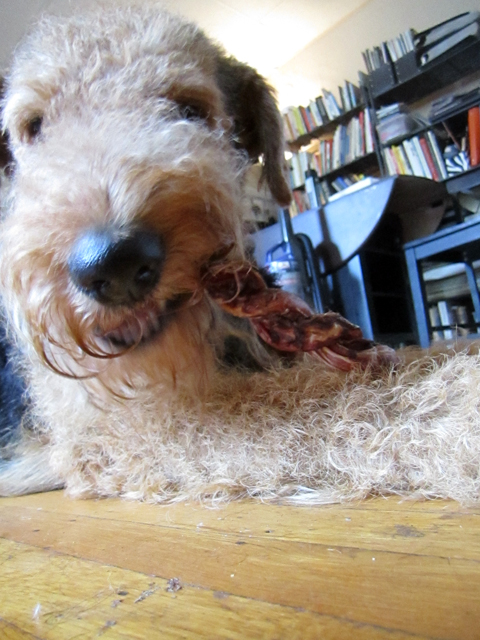 Yes, I am now amongst the ranks of clippered Airedales.  I have fuzzy velvet where just fuzz used to me.  And don’t tell anyone, but I KINDA LIKE IT